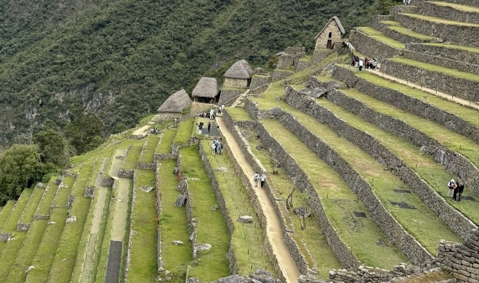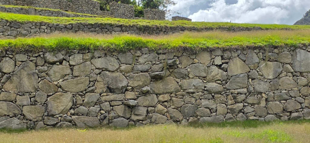 Starting at almost the top of the site, we saw the farming terraces. A feat of engineering built with a front wall of hand cut stones using the natural bedrock as the back.