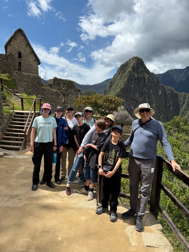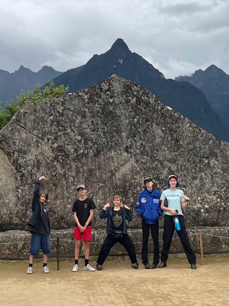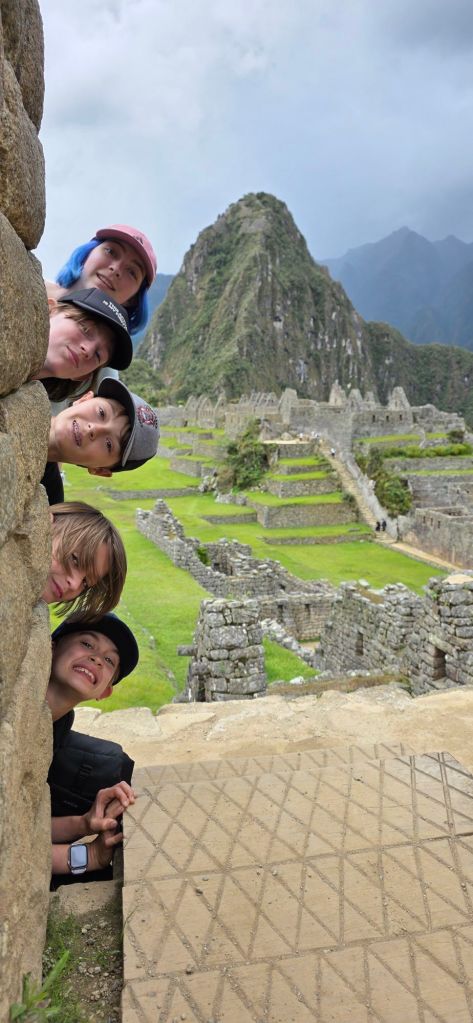Freddy was obviously a pro. He strategically stopped for photo or education breaks as we climbed 20 minutes up stairs to the terraces. The altitude is lower than Ollantaytambo but it was still a factor for us and he made sure no one keeled over. The pictures he took for us are great as well. We got all the standard group shots as well as one of the kids that was a little more fun. Promise no photoshop or AI on that one.