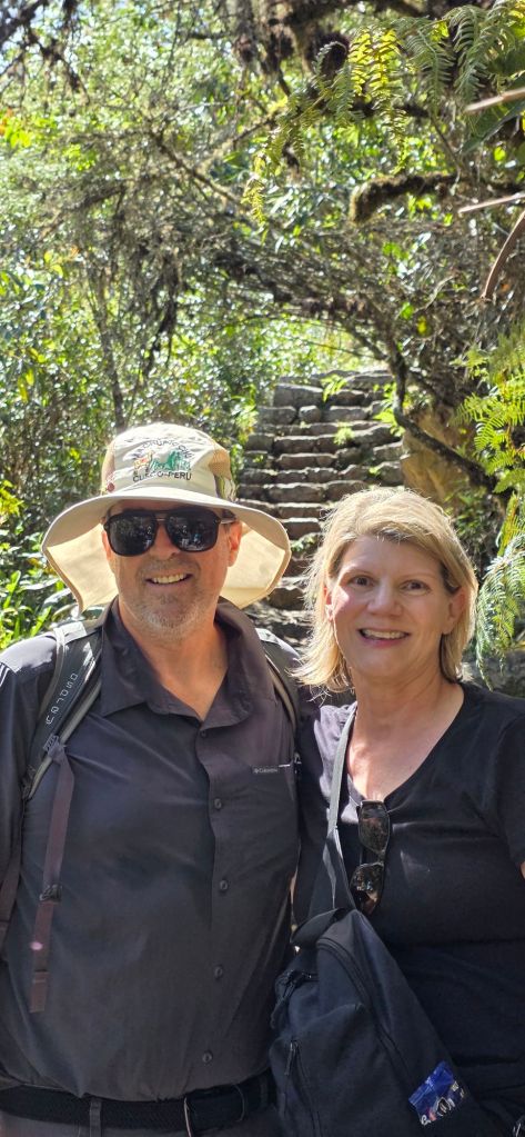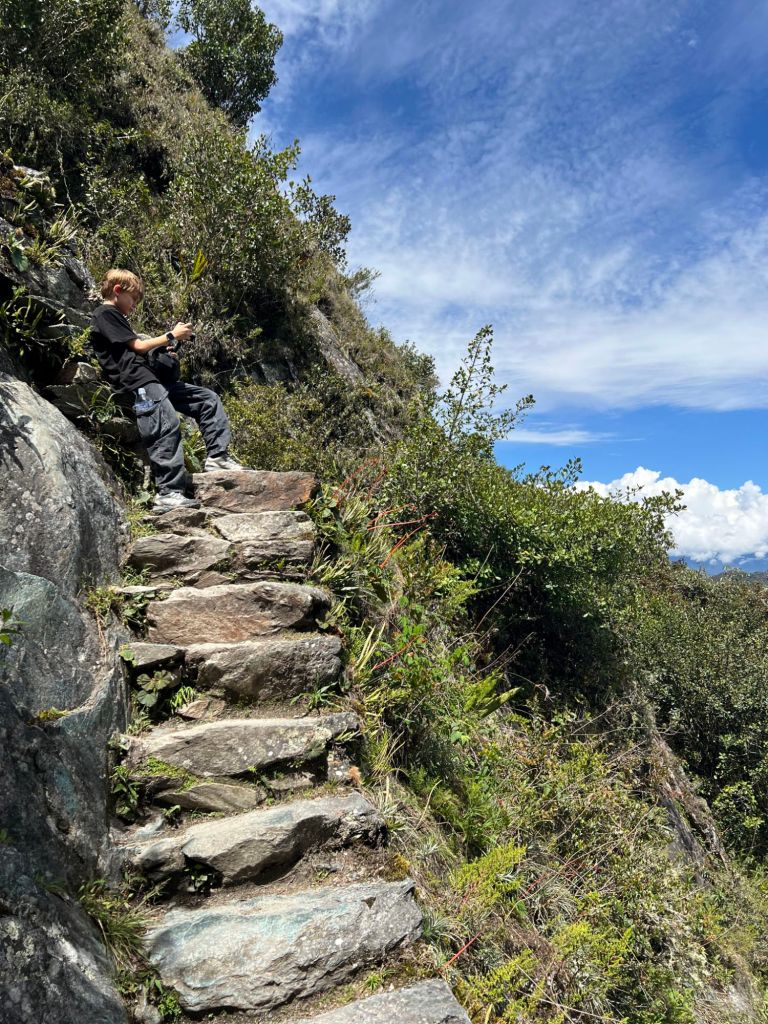 After about 15 minutes of these uneven 400 year old steps our Adventurers had a choice: continue up (and up and up) the steps to the top of the actual mountain Machu Picchu or divert to the top terraces of the site for more amazing views of the ruined city.