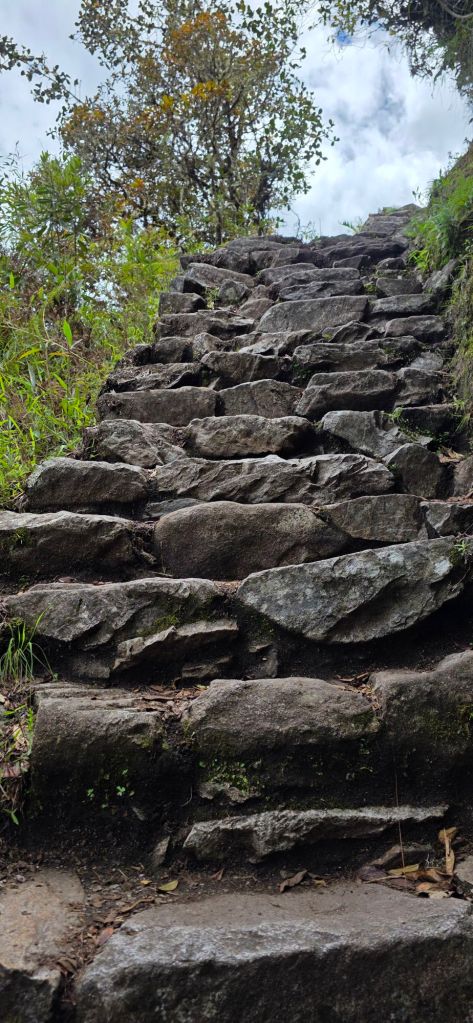 The stair rocks were all stable and our confidence in the footing grew even though the skies seemed to darken with imminent rain which could test our resolve.