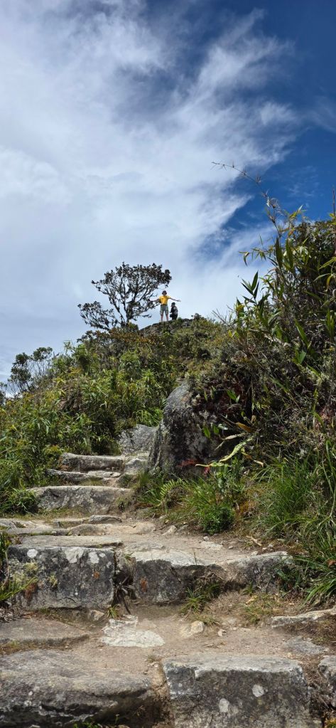 The climb starts at 7,972 feet (2,430m) so the oxygen levels are already a bit lower than we are accustomed to. We may call this a hike but it is more fairly described as a torturous stair climb where the non-uniform stair heights are between 4 and 16 inches high.
