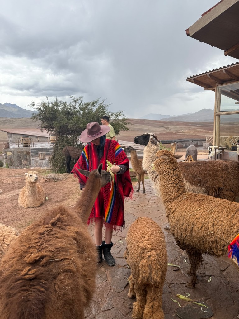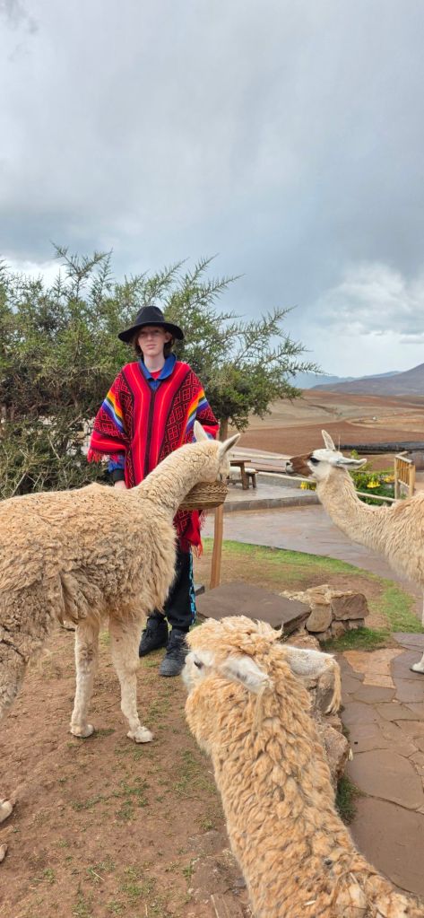 Turns out one of the big benefits of this place, even if you only stop for lunch, is that you can feed the animals. Corn husks seemed to be on the menu today. They asked that everyone feeding wear a traditional poncho and hat. We think it’s to train the animals that those clothes mean food and if you aren’t dressed like that they won’t bother you. Regardless of why, it made some great photos.