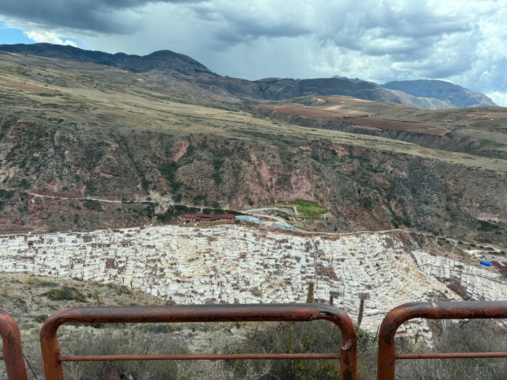 Our first stop was the Salineras de Maras or the Salt Mines of Maras. The site consists of hundreds of ponds that have been ‘mined’ since pre-Inka times and are still active today. At first glance they seemed painted but as we got closer we realized the white color is crystallized salt covering the wall of the ponds.