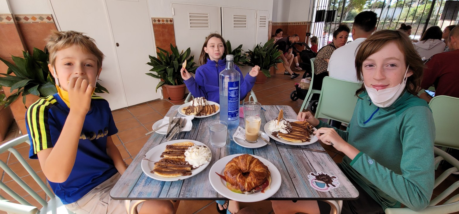 Suaram, CreeperKitty and CreeperPuppy were happy to be out for breakfast together at a charming local café. The kids proficiency with Spanish has allowed them to easily order their favorite European breakfast. Dad chose Croissant Con Jamón instead of Chocolate. This weekend in Rota it seems everyone in Spain was taking advantage of the threeContinue reading “Rota, Spain; Day 4”