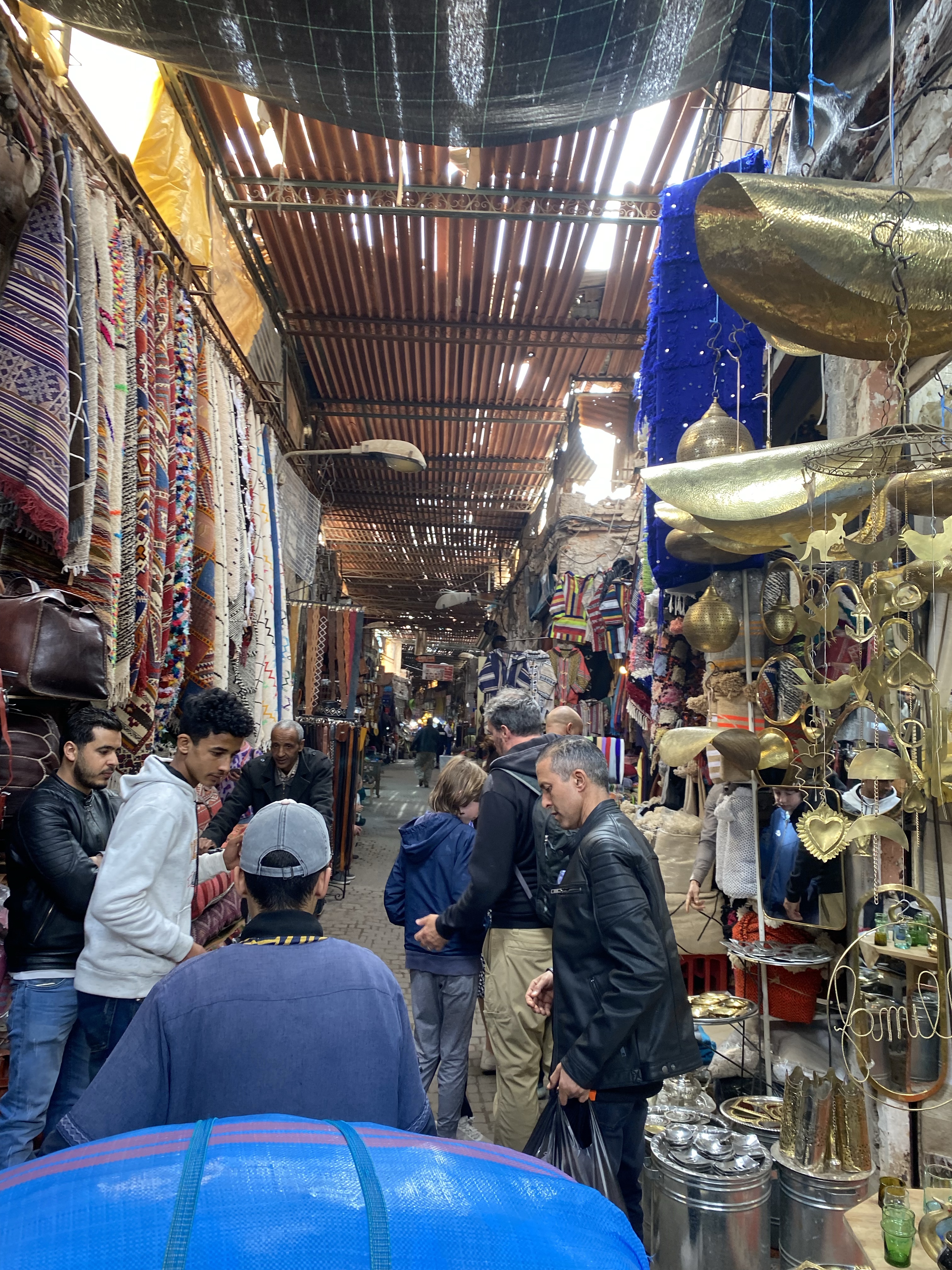 We left the lovely Old Medina riad today to get our Covid tests and move closer to the airport for tomorrow’s flight to Europe. In no particular order, we had an eating Adventure, a shopping Adventure, a shipping Adventure and a seven dimensional Adventure! No, the Covid tests were not in 7D…they were easy and…