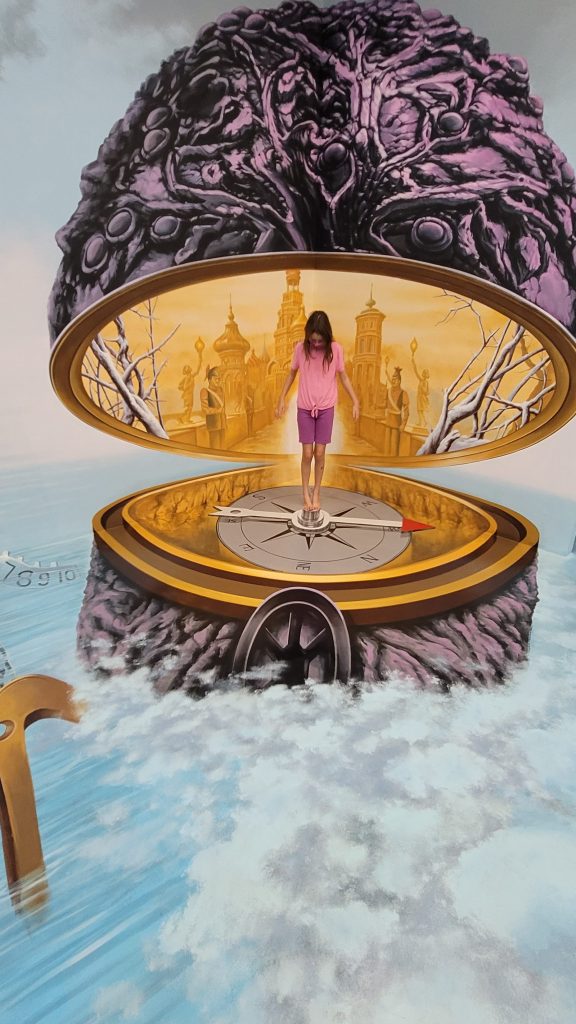 We had so much fun Monday on CreeperKitty’s birthday that we couldn’t fit it all into one post and decided to share it on our quiet Wednesday. After visiting the Umbrella Factory we went a little ways down the road to a place called Art in Paradise – there we got a lesson in perspective…